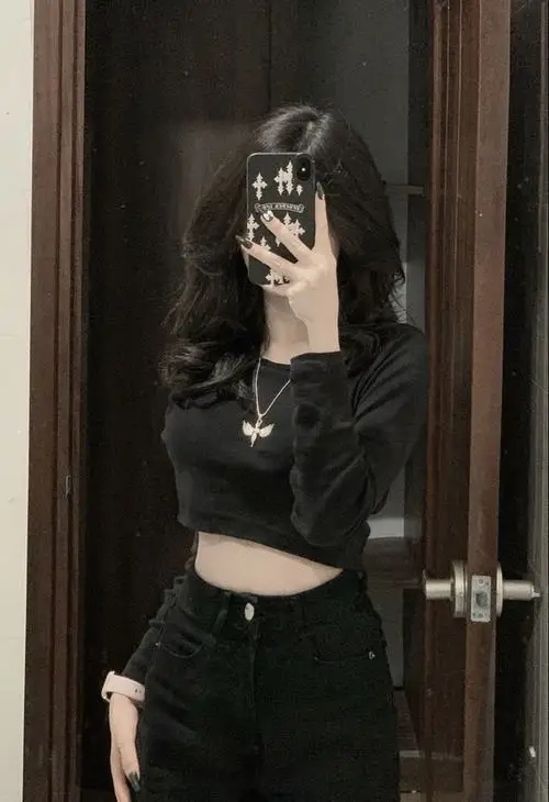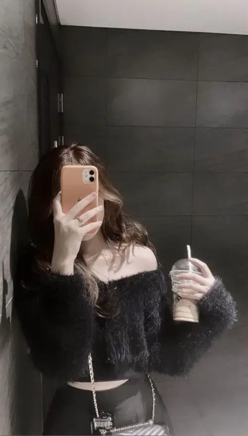 Người xem sẽ chú ý nhiều hơn đến mái tóc, trang phục, vóc dáng, bàn tay và thần thái tổng thể. Kiểu ảnh này hợp với không gian quán cà phê, phòng ngủ, góc gương tối giản hay những nơi có ánh sáng đẹp, giúp khung hình vừa đời thường vừa nổi bật.