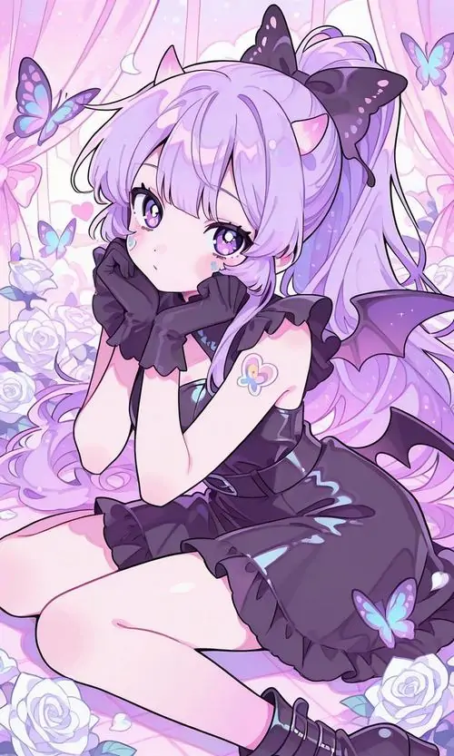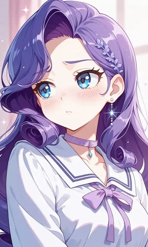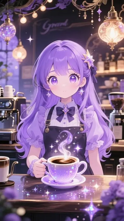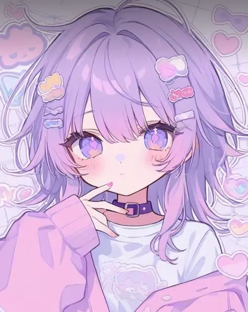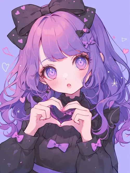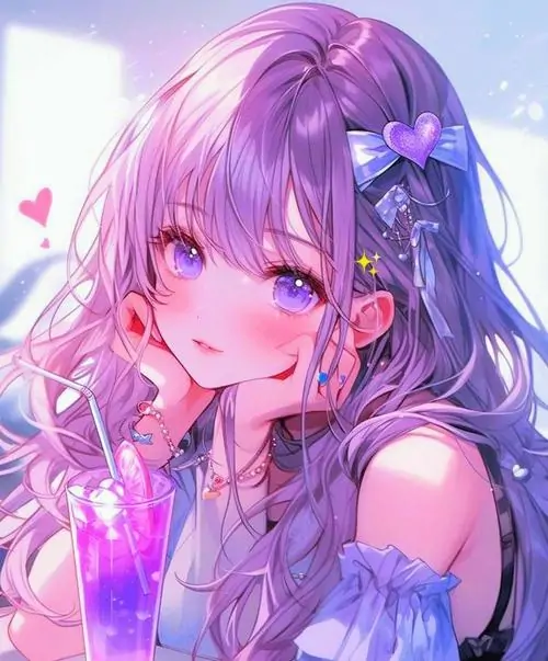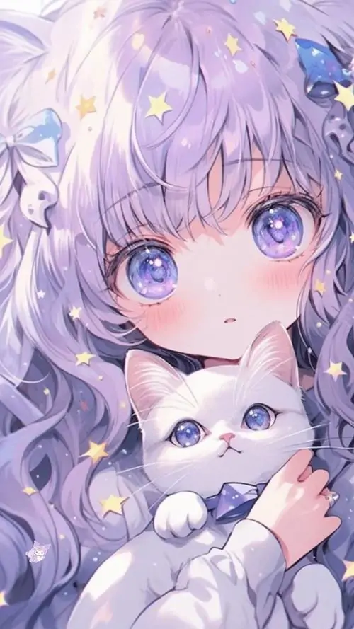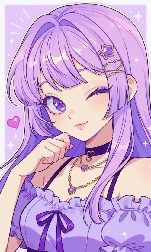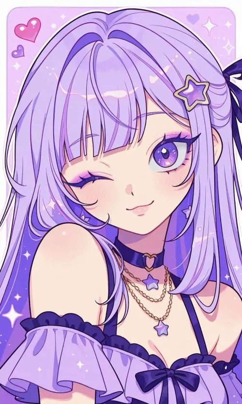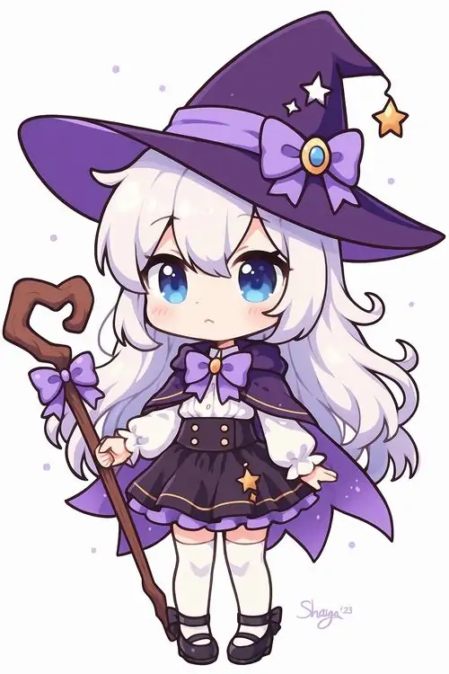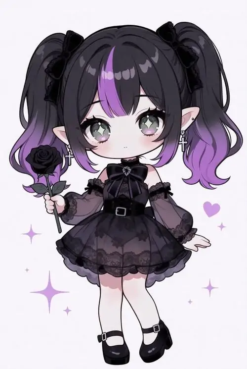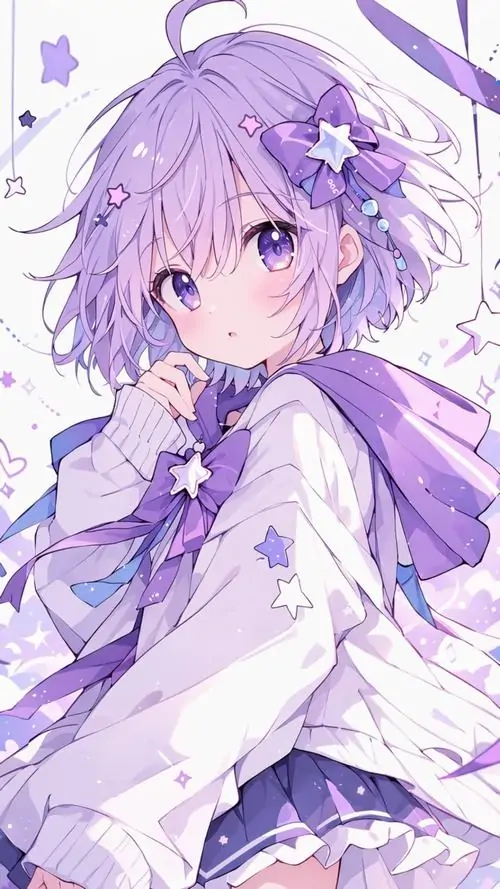 Màu sắc này mang lại cảm giác mộng mị vừa giống một cô tiểu thư đài các vừa có nét tinh nghịch của một phù thủy nhỏ. Những chi tiết trang trí trong ảnh chibi nữ tím như ngôi sao lấp lánh hay hoa oải hương càng làm tăng thêm vẻ huyền ảo cho tình huống mà nhân vật xuất hiện.