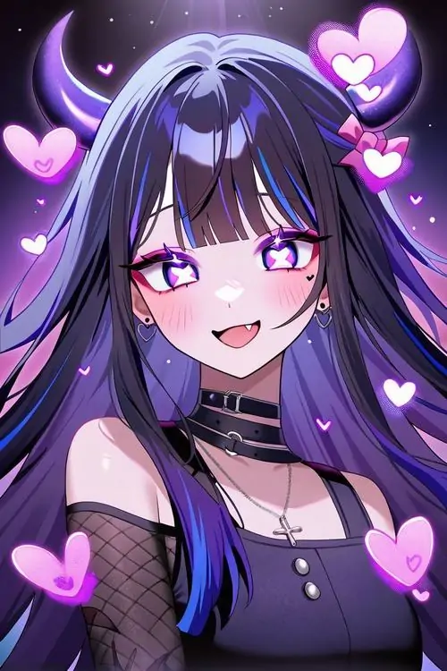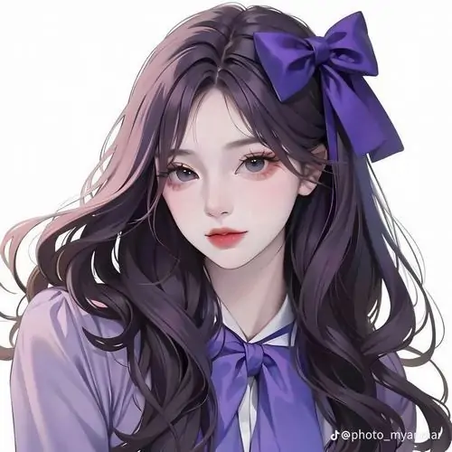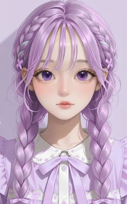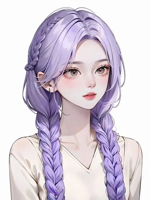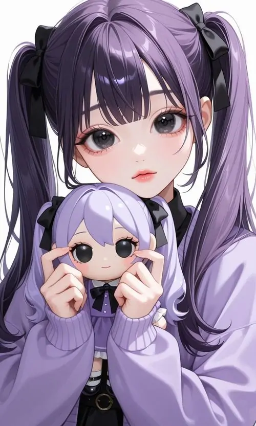 Đây là một nhánh đặc biệt trong nghệ thuật vẽ nhân vật theo phong cách tối giản nhưng cực kỳ chi tiết về biểu cảm. Điểm nhấn nổi bật nằm ở sự phối trộn giữa các sắc độ tím từ nhạt đến đậm trên mái tóc bồng bềnh và đôi mắt to tròn chiếm nửa khuôn mặt.
