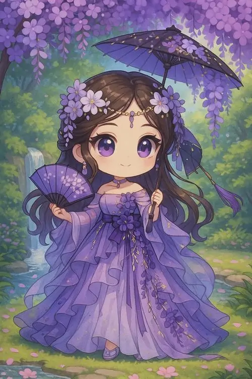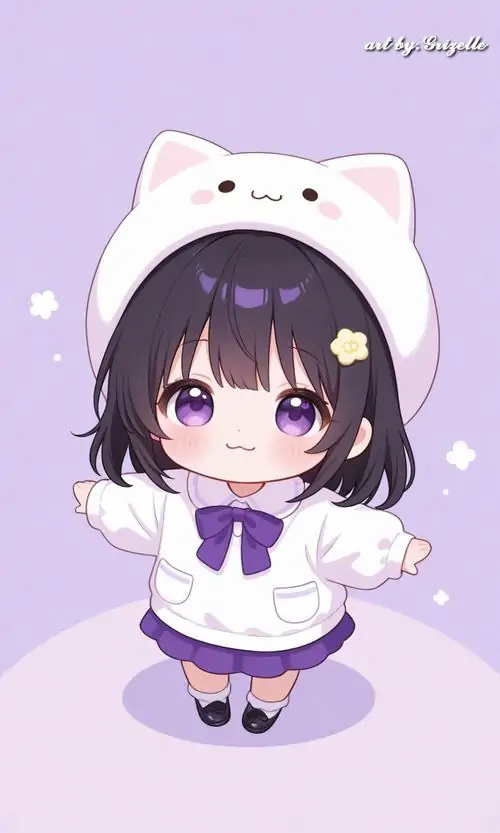 Hình ảnh chibi nữ màu tím cute không đơn thuần chỉ là tác phẩm đồ họa giải trí mà còn thể hiện sự tinh tế trong việc kết hợp màu sắc và tâm lý học. Sắc tím tượng trưng cho sự sáng tạo vô hạn và cá tính độc lập của người sở hữu chúng.