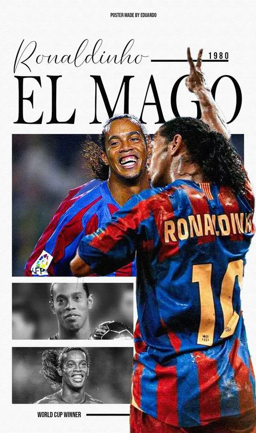 Ronaldinho (tên thật là Ronaldo de Assis Moreira) là huyền thoại bóng đá người Brazil, được mệnh danh là một trong những nghệ sĩ sân cỏ vĩ đại nhất lịch sử. Hình ảnh Ronaldinho không đơn thuần ghi lại một cầu thủ, mà đóng gói cả tinh thần bóng đá phóng khoáng của Brazil: vui, ngẫu hứng, kỹ thuật và đầy tôn trọng khán giả. Nhìn ảnh là thấy “ma thuật” nằm ở thái độ, không chỉ ở động tác. Nó gợi ký ức, truyền cảm hứng chơi đẹp, và nhắc rằng sân cỏ cũng có chỗ cho nụ cười.