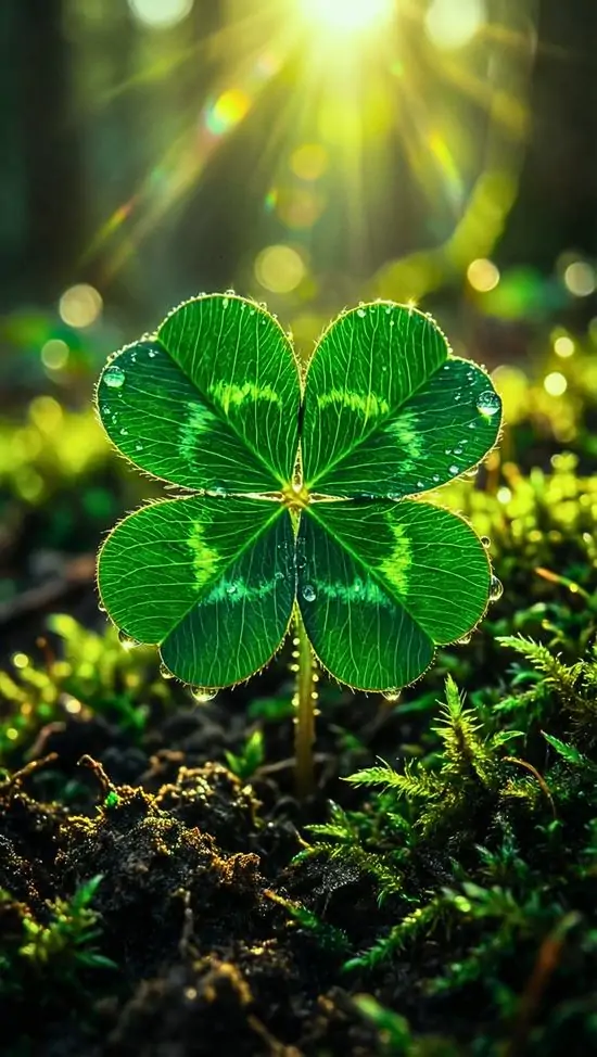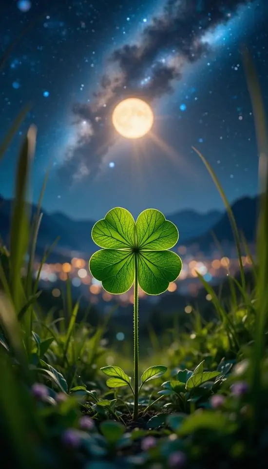 Cỏ 4 lá là một dạng đột biến bất thường của cỏ 3 lá thông thường (thường là cỏ Trifolium repens), tỉ lệ xuất hiện trong tự nhiên cực kỳ thấp, ước tính chỉ khoảng 1/10.000 cây cỏ 3 lá. Cây có 4 phiến lá mỏng hình tim hoặc bầu dục tỏa ra từ một cuống duy nhất. Chúng thường phát triển tốt ở vùng ôn đới, dưới các hốc cây hoặc nơi ít ánh sáng. Khi đi vào ảnh nền, hình ảnh này không chỉ tạo điểm nhấn xanh mát mà còn khiến màn hình có chiều sâu tinh thần rõ hơn.