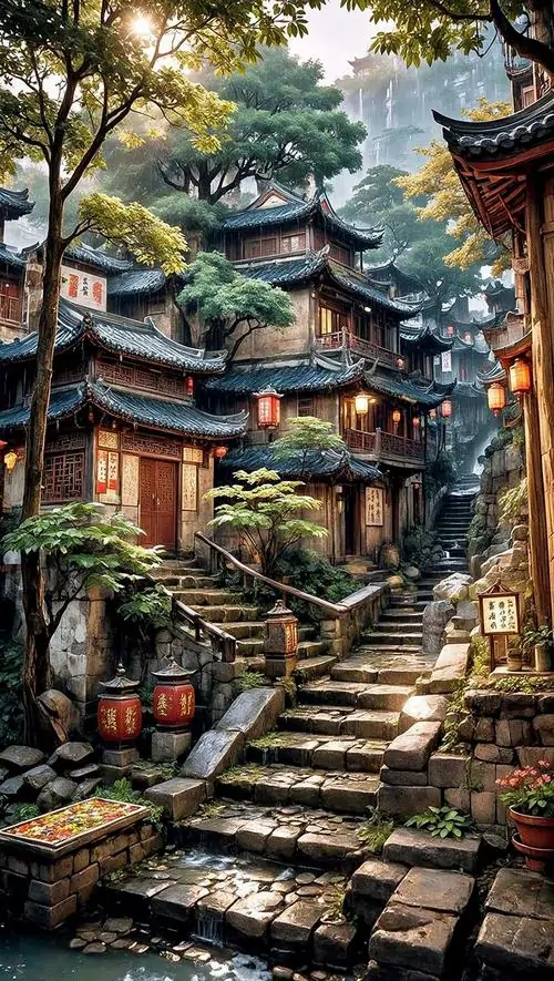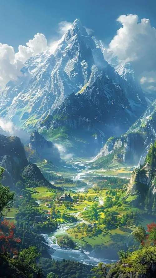 - Đất đai & Phong cảnh: Đồng ruộng màu mỡ, núi non hùng vĩ, công trình kiến trúc vuông vức, kiên cố.
